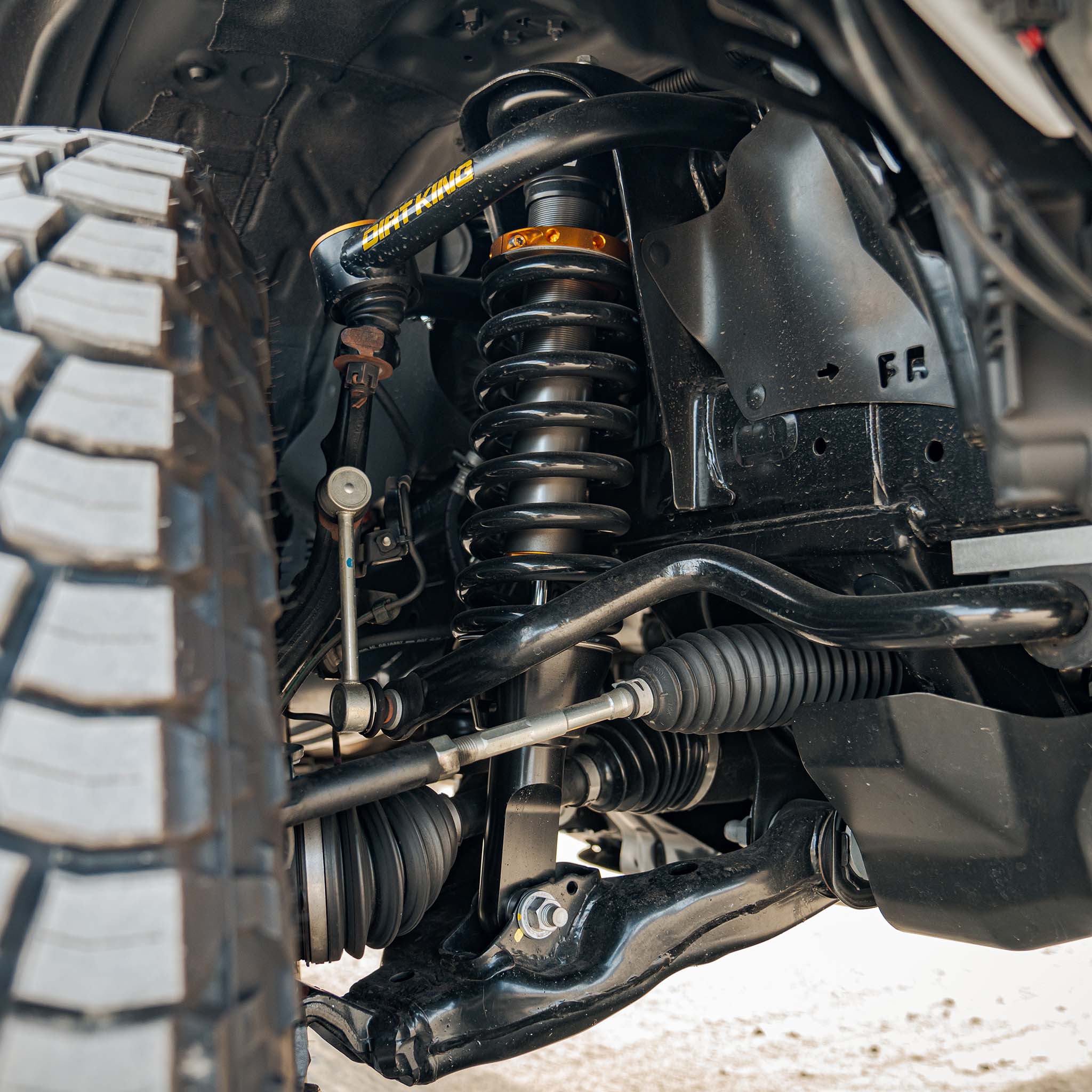 Transform your 4Runner by eliminating front-end rake and achieving a leveled lift with the Dirt King MT Trail Runner Kit. This cost-effective solution includes Dirt King's 4130 Upper Control Arms, 2.0 IFP Front Coilovers, and 2.0 IFP Rear Shocks—all expertly tuned for superior comfort during everyday driving and on rugged trails. It's the perfect choice for those looking to enhance their vehicle's appearance and ride quality without the premium price tag of an extreme off-road package. For unmatched off-road control, adjustability, and high-speed desert capability, consider our MT PreRunner Kit.