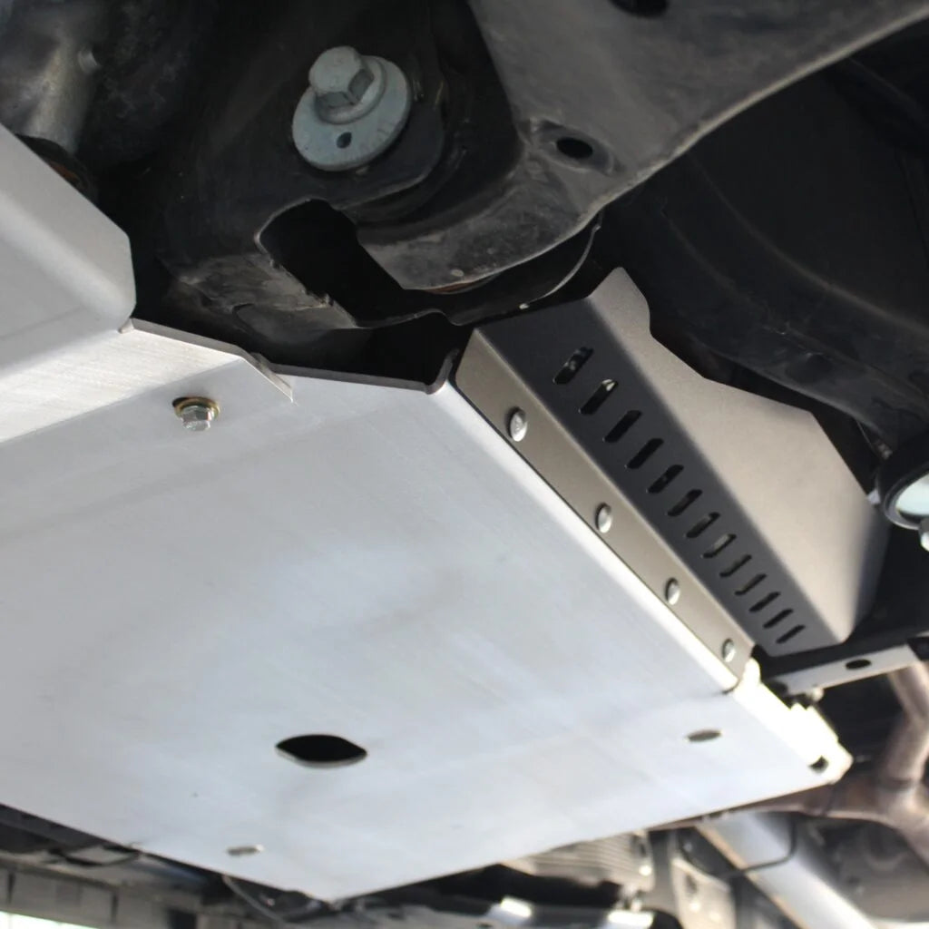 Underbody damage is costly. Protect your investment with the high quality transmission skid plate and catalytic guards by RCI Metalworks. Ties in seamlessly with RCI front and transmission skid plates and compatible with the Toyota TRD PRO engine skid plate.