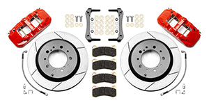 AERO4-DS Big Brake rear axle kits replace the factory disc brakes and use the OE parking brake assembly as a compliment to front big brake upgrade kit. High capacity braking from the Aero4 Dust Boot calipers incorporate an exclusive dust wiper seal that further protects the piston bore from dust and corrosion. BP-20 compound pads, and oversized 14.50" rotors are matched to the OE master cylinder output, ABS function, and individual vehicle bias requirements. Enhanced brake performance, increased durability, and high-tech style compliment big wheel, tire, and suspension upgrades on vehicles with increased brake requirements from high GVW. Kit comes complete with stainless braided flex lines.