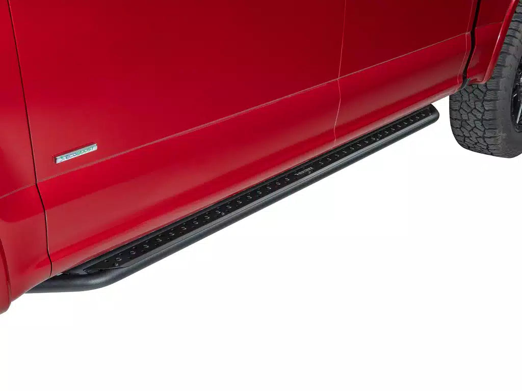 The Go Rhino Dominator DSS Slider Steps feature a rugged textured black powder coat finish, protecting the underlying steel from rust and scaling. The coating is also highly resistant to chips, scratches, oil, and chemicals, ensuring a long-lasting finish.