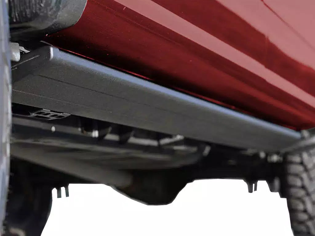 - Sturdy, rocker-panel-mounted brackets