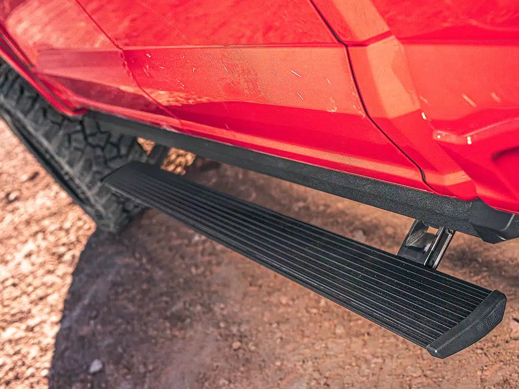 AMP Research is the leading provider of power-retractable running boards, making waves with its original PowerStep™. While providing sufficient assistance for most individuals, AMP Research offers this beefier, lower-hanging iteration, the PowerStep™ XL!