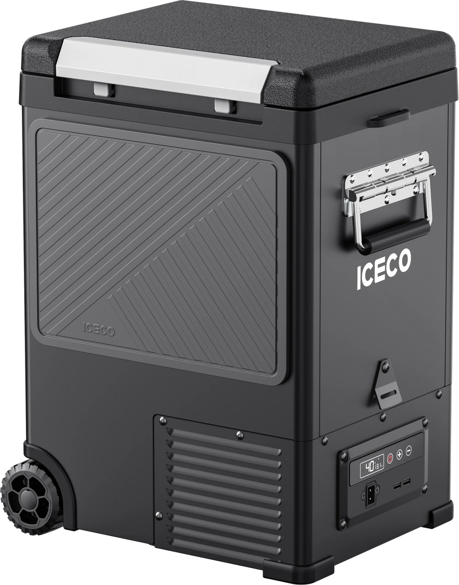 The ICECO IPT20 20L Portable Center Console Refrigerator from Nomadic Supply Company® is a portable, dual-zone refrigerator designed for use in full-sized trucks and Mercedes Sprinter vans as a center console fridge.
