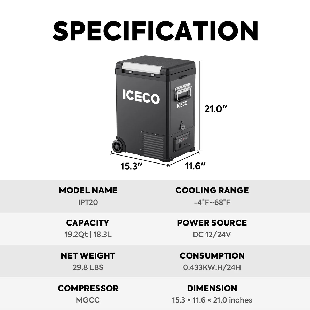 ICECO IPT20 20L Portable Center Console Refrigerator Specifications: